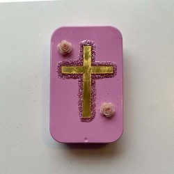 Cet autel de poche est un autel religieux miniature, conçu comme un espace de prière et de protection à emporter avec soi. Inspiré des autels d’église et des ex-voto traditionnels, il se présente dans une petite boîte métallique facile à transporter.