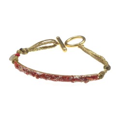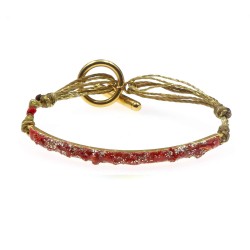 Ce bracelet demi-jonc unique transforme l'imperfection en beauté. Sur la face du bracelet, des fragments de pierre brisée sont délicatement travaillés et sublimés par une couche d'émail, créant un jeu de textures et de couleurs fascinant. Chaque pièce est une véritable œuvre d'art, conçue à la main avec soin, alliant la force brute des matériaux naturels à la finesse d'un savoir-faire artisanal.