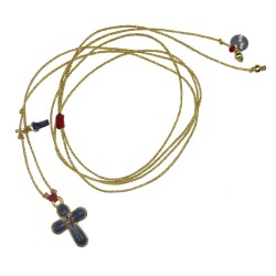 La croix est montée sur un cordon doré ajustable, agrémenté d’une petite pierre de Lapis lazuli naturelle .