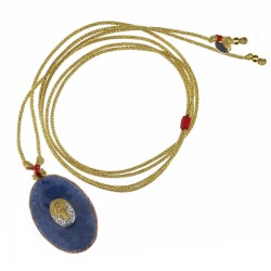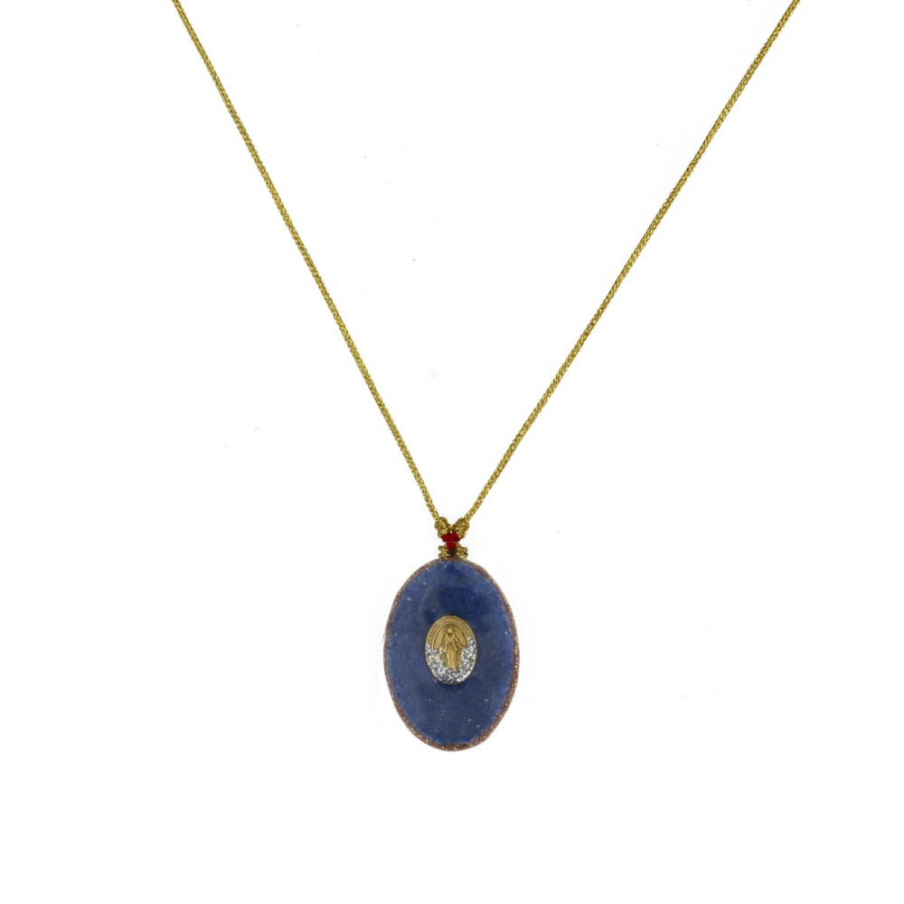 Ce collier avec médaillon ovale modèle moyen, sublimé par une madone et un contour en émail poudré or, réalisés avec un savoir-faire artisanal unique.