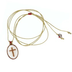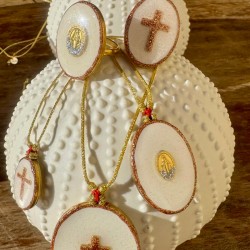 Au centre, une croix en émail poudré or capte la lumière avec élégance et apporte une dimension précieuse et intemporelle à la pièce.