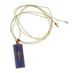 Ce collier avec une barrette sublimé par une croix et un contour en émail poudré or, réalisés avec un savoir-faire artisanal unique.