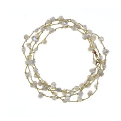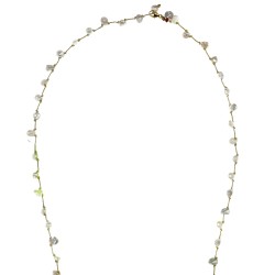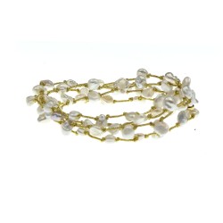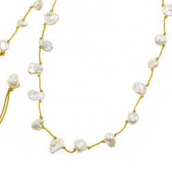 Ce collier est réalisé sur un fil or délicatement noué à la main, mettant en lumière de véritables nacres baroques naturelles.