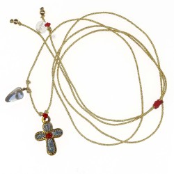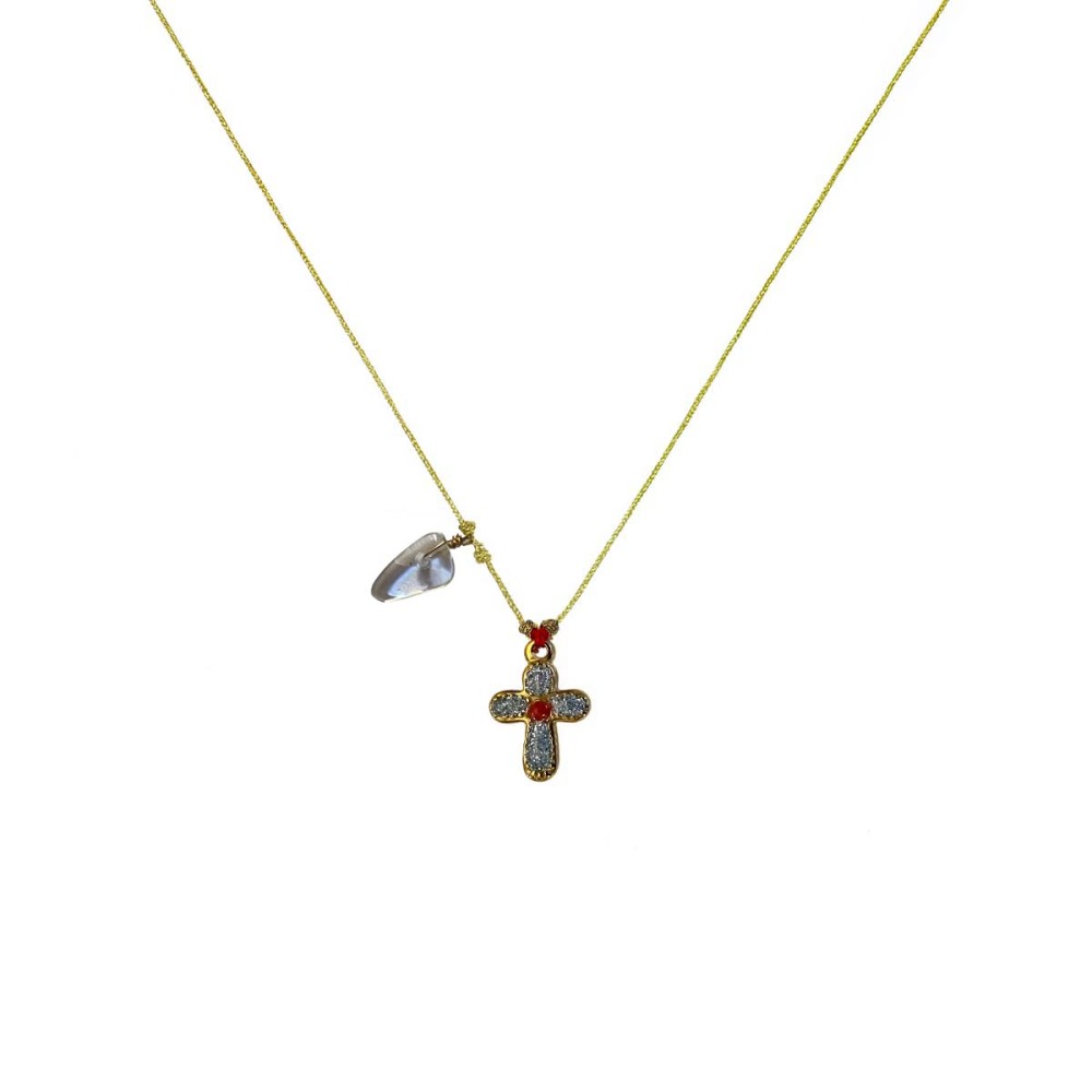 Collier Croix monté sur cordon Or, décor diamanté argent avec une pierre de nacre